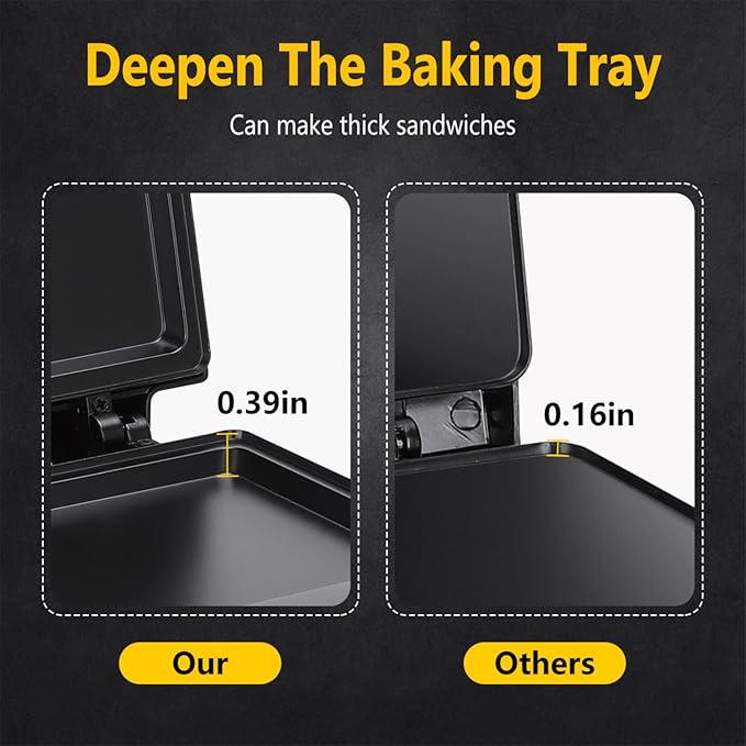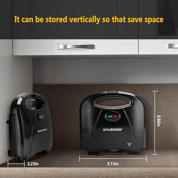 Aigostar Sandwich Maker with Non-stick Deep Grid Surface for Egg, Ham, Steaks Compact Electric Grill Tostadora de Pan Black, ETL Certificated, Roy