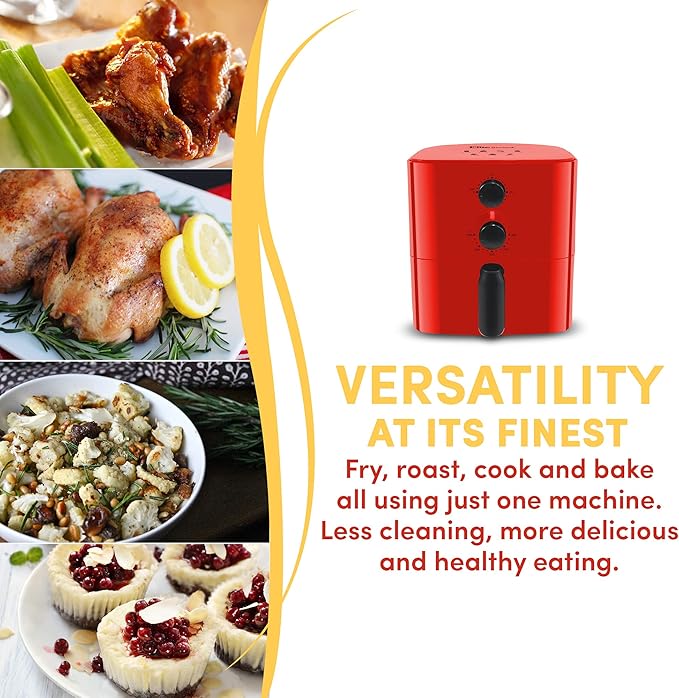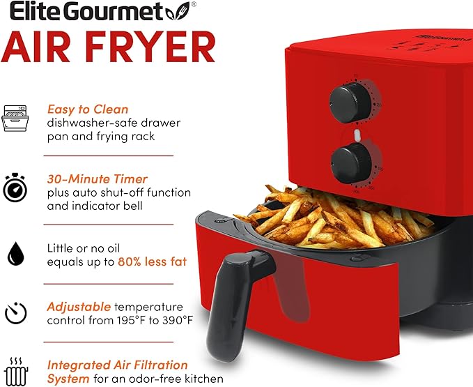 Elite Gourmet EAF-3218R Personal 1.1 Quart Compact Space Saving Electric Hot Air Fryer Oil-Less Healthy Cooker, Timer & Temperature Controls, Red.