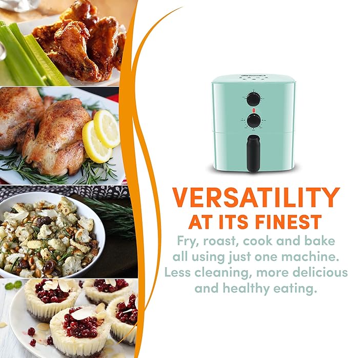 Elite Gourmet EAF-3218BL Personal 1.1Qt Compact Space Saving Electric Hot Air Fryer Oil-Less Healthy Cooker, Timer & Temperature Controls, PFOA Free, Mint