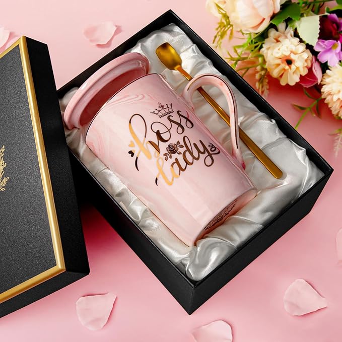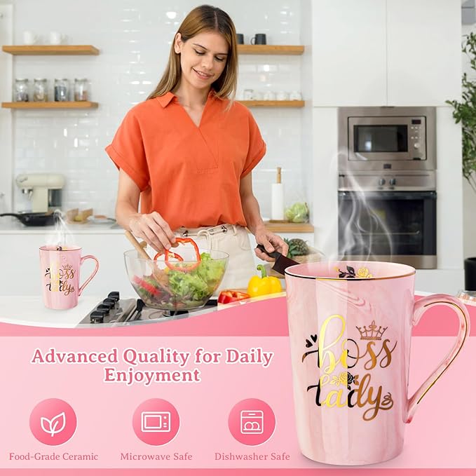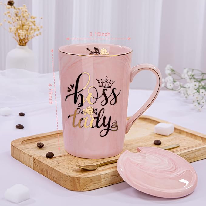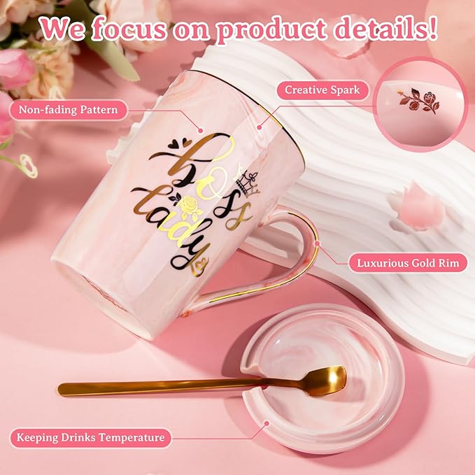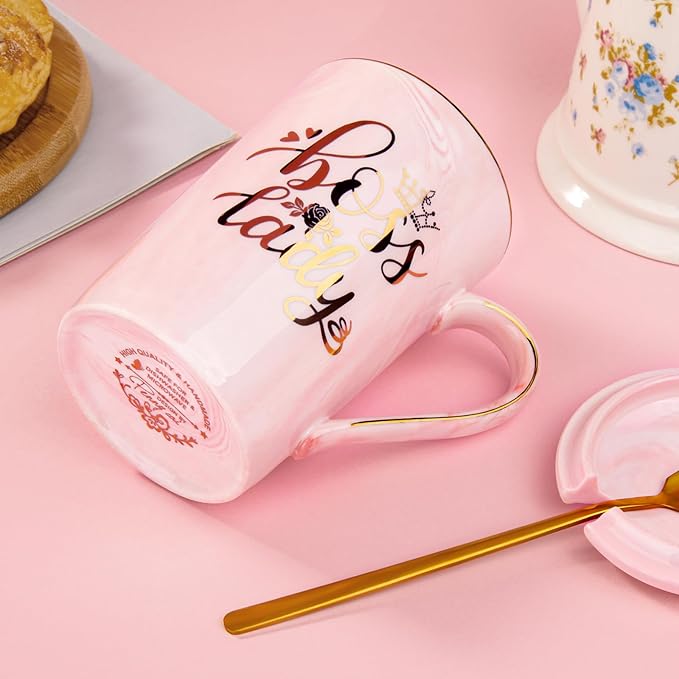 Biching Boss Lady Gifts for Women - Unique Birthday Gift for Women, Friend, Coworkers, Colleagues, Boss Female - Appreciation Mothers Day Gifts - 14Oz Marble Ceramic Coffee Mug Pink