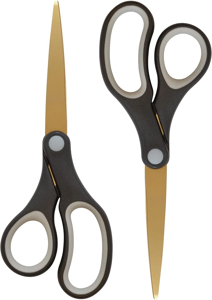 Westcott 55847 8-Inch Titanium-Bonded Scissors For Office and Home, Black/Gold, 2 Pack