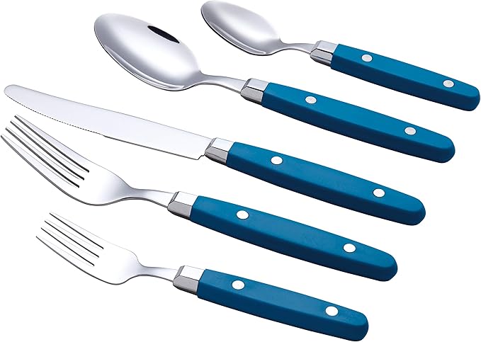 ANNOVA Silverware Set, Retro/Rivet Colorful Stainless Steel Tableware Kitchen Flatware Set Utensils, Includes Dinner Knives, Forks, Spoons, Salad Forks & Dessert Spoons (Blue, 20 Pieces)