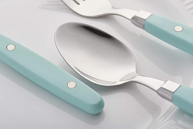 ANNOVA Silverware Set, Retro/Rivet Colorful Stainless Steel Tableware Kitchen Flatware Set Utensils, Includes Dinner Knives, Forks, Spoons & Dessert Spoons (Blue, 24 Pieces)