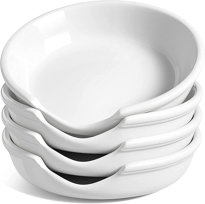 LE TAUCI Ceramic Spoon Rest for Stove Top, 4.8 Inch Spoon Holder for Kitchen Counter, Kitchen Gadgets, Coffee Spoon Cradle, Home Accessories for Utensils, Set of 4, White