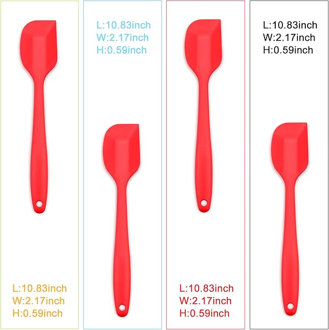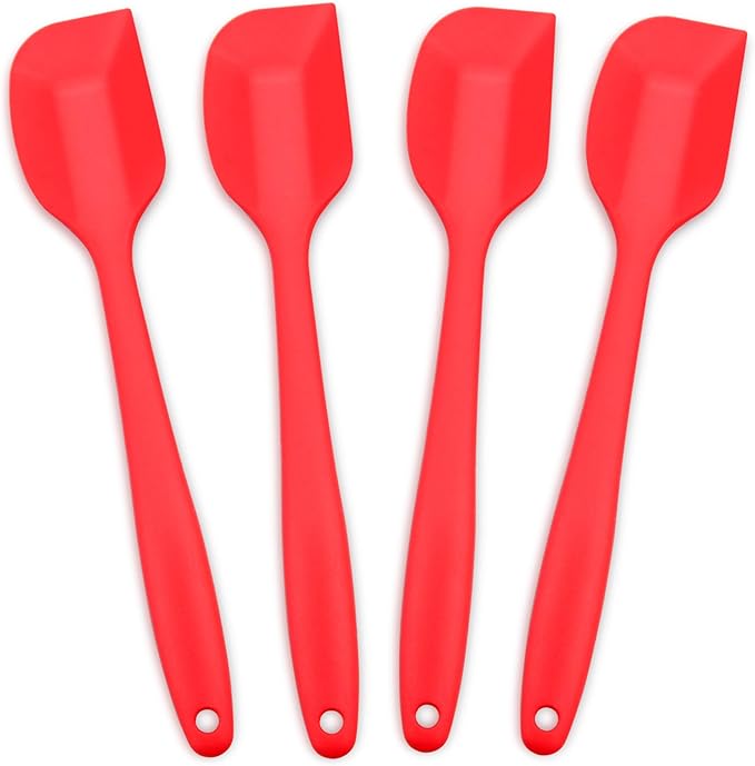 Silicone Spatula 4-piece Set, Heat-Resistant Non-stick Rubber Spatulas with Stainless Steel Core, Red