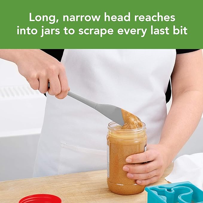 Tovolo Flex-Core Silicone Spatula Jar Scraper - Long-Handled Rubber Spatula with Angled Head for Scooping & Scraping - Heat-Resistant Spatulas for Kitchen Use, Dishwasher Safe & BPA-Free