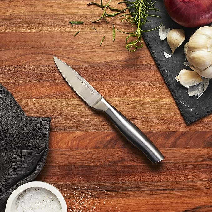 About This 4-piece set includes 8-in. Chef, 5-in. Serrated Utility, 3-in. Paring Knife, and handheld sharpener High-quality German stainless steel... Read more