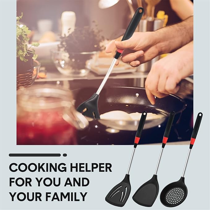 About This Safe and quality: our slotted spoon and wok spatulas are made of quality silicone and stainless steel, reliable... Read more