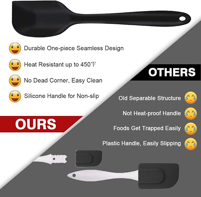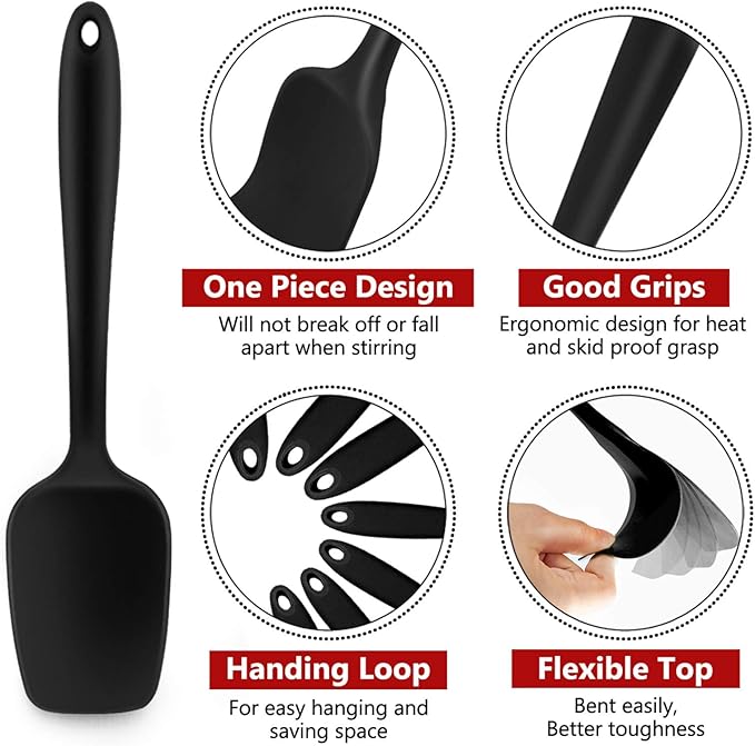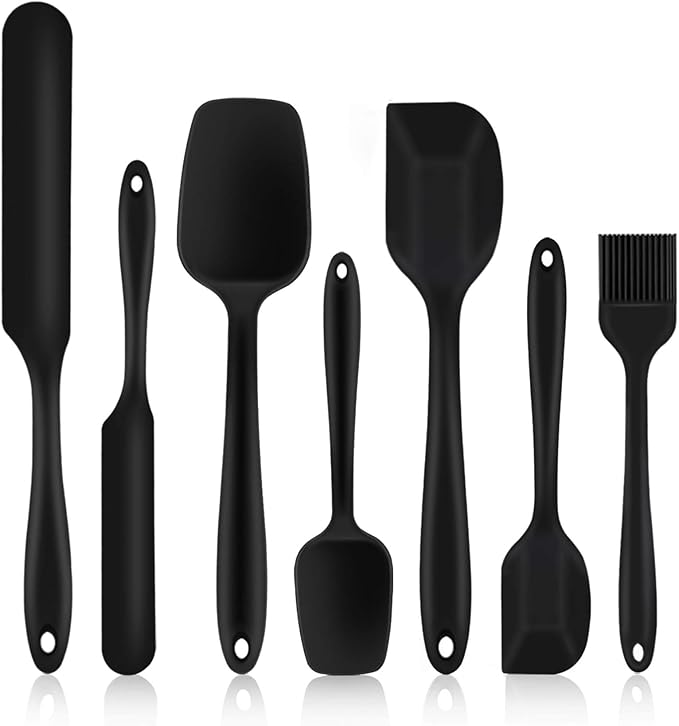 Silicone Spatula Set of 7, P&P CHEF Heat-Resistant Rubber Spatulas Kitchen Utensils Set for Non-stick Cooking Baking Mixing, Seamless & Flexible Design, Dishwasher Safe, Black