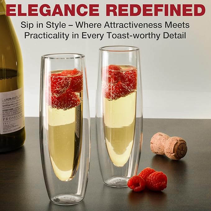 About This Contemporary Double Wall Design: These stemless double wall champagne flutes keep drinks colder longer and reduce condensation. Sleek... Read more