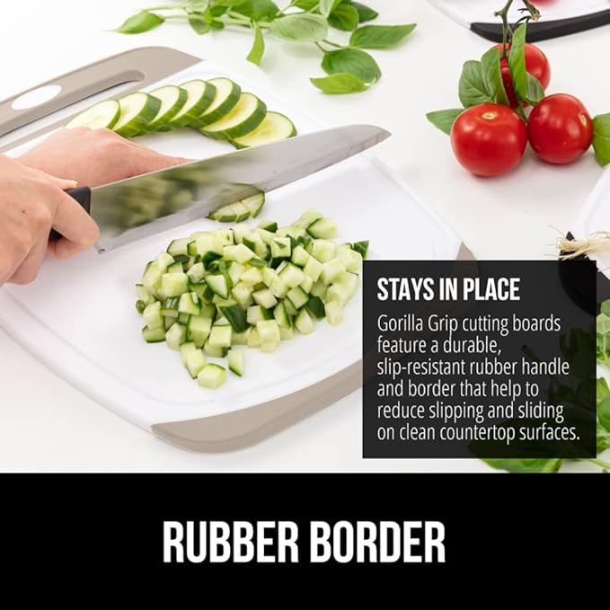 GORILLA GRIP BPA-Free Reversible Kitchen Cutting Board Set of 3, US Designed, Nonporous, Juice Grooves Catch Liquid, Slip Resistant Border, Dishwasher Safe, Durable Large Food Chopping Boards, Almond
