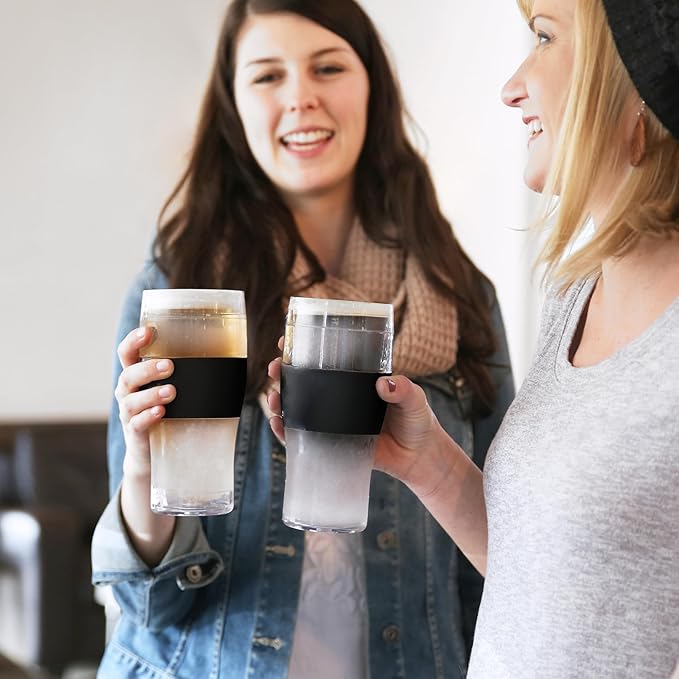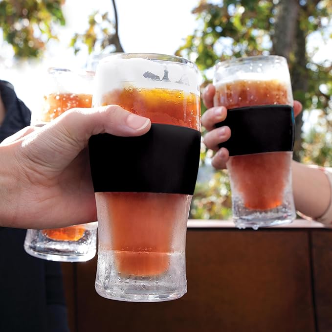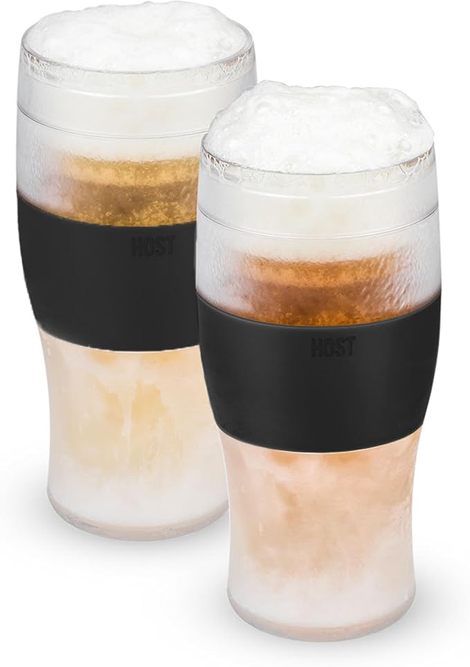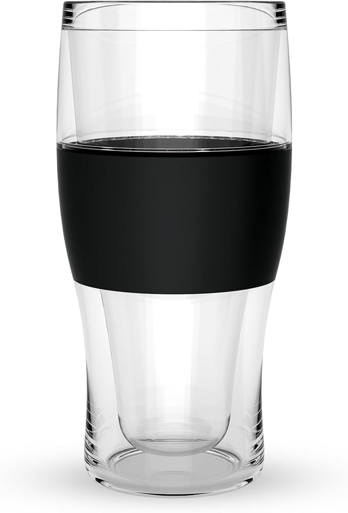 Host FREEZE Beer Glasses, Frozen Beer Mugs, Freezable Pint Glass Set, Insulated Pint Glass to Keep Your Drinks Cold, Double Walled Insulated Glasses, Tumbler for Iced Coffee, 16oz, Set of 2, Black
