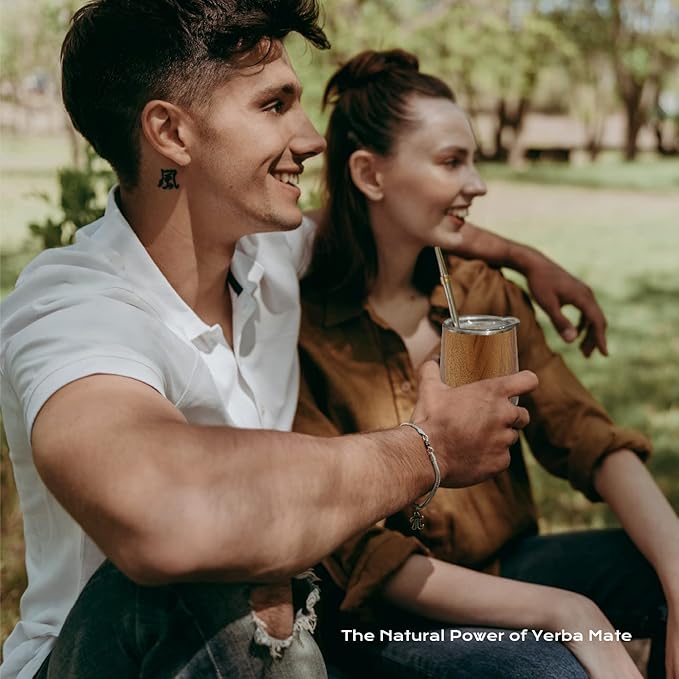 BALIBETOV 5 pcs large Yerba Mate Cup and Bombilla Kit, Includes one 8 oz Yerba Mate Gourd with Lid, Two Bombillas Mate Straw and one cleaning brush (Wood, 8.00)