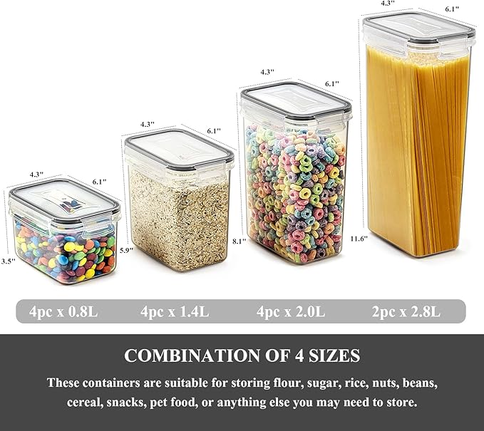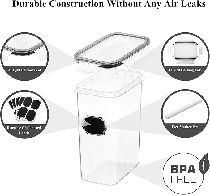 Wildone Airtight Food Storage Containers with Lids, 14PC Plastic Kitchen Storage Containers for Pantry Organization and Storage, Cereal, Flour and Sugar Containers, Include 20 Labels & Pen