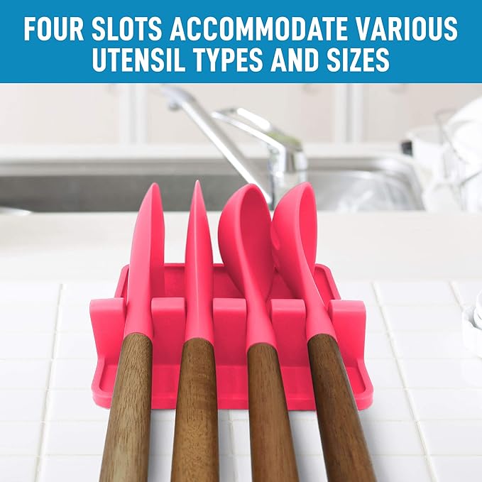 Zulay Kitchen Silicone Utensil Rest with Drip Pad for Multiple Utensils - BPA-Free, Heat-Resistant Spoon Rest & Spoon Holder for Stove Top - Kitchen Utensil Holder for Ladles & Tongs - Honeysuckle