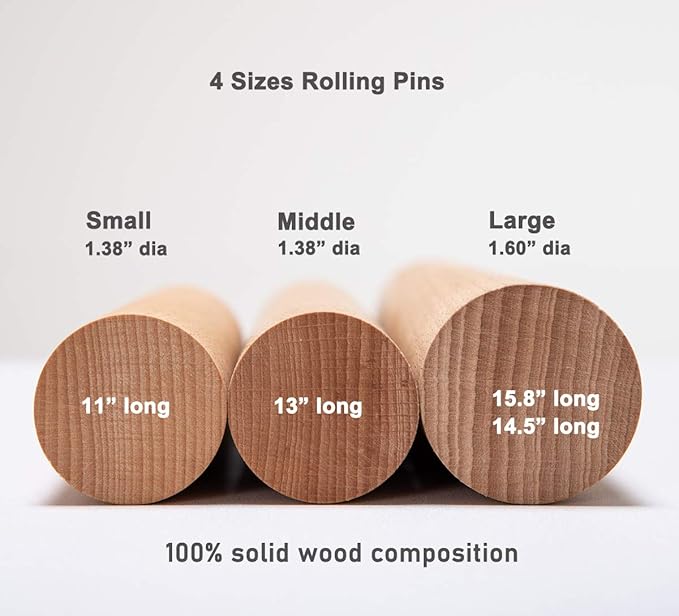 GOBAM Wood Rolling Pin, Large - Dough Roller for Pasta, Cookies, Pie, Pizza, Chapati, Fondant, Rolling Pins for Baking, Bread Making Tools and Supplies - 14.5 x 1.6 Inches