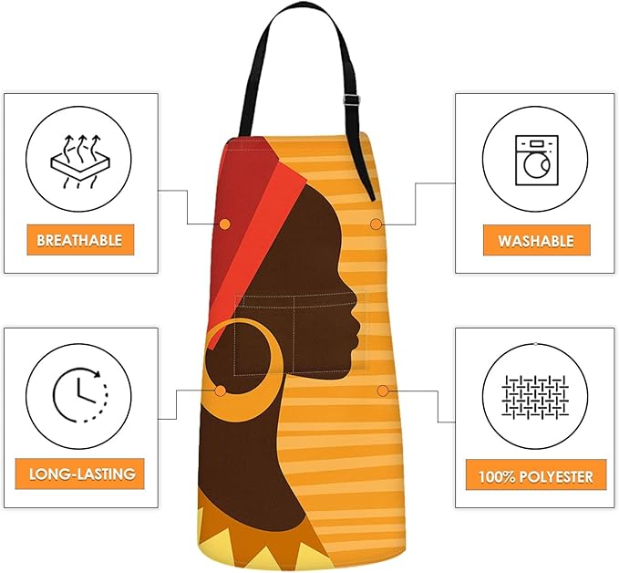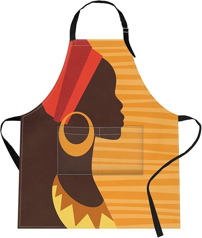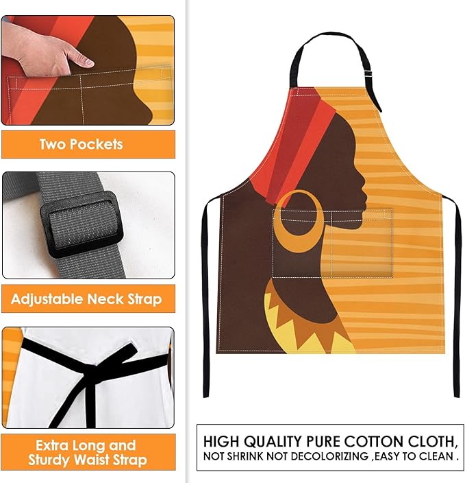 Britimes Apron Home Kitchen Cooking Baking Gardening for Women Men With Pockets African American Woman Girl Folk 32x28 inch