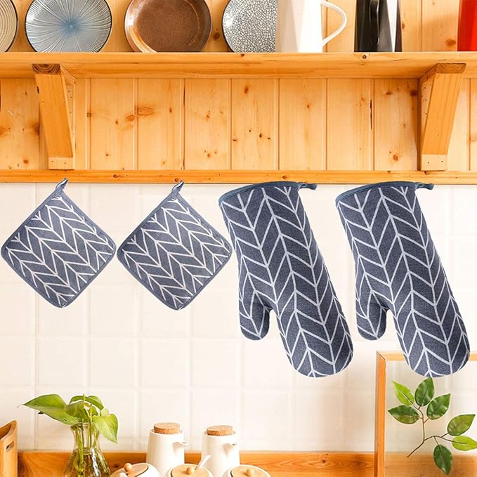 Oven Mitts and Potholders BBQ Gloves-Oven Mitts and Pot Holders with Recycled Infill Silicone Non-Slip Cooking Gloves for Cooking Baking Grilling (4-Piece Set) (Grey-02)