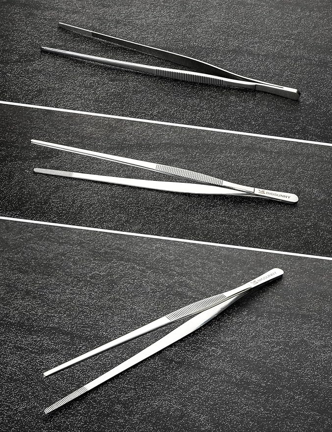 8.5 Inch Kitchen Tweezers Fine Tweezer Tongs, MSY BIGSUNNY Stainless Steel Food Tweezers Multi-function Precision Serrated Tips Cooking Tongs Kitchen Serving Tong