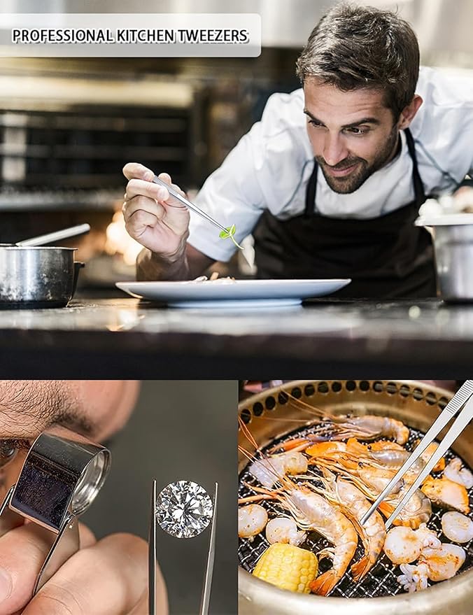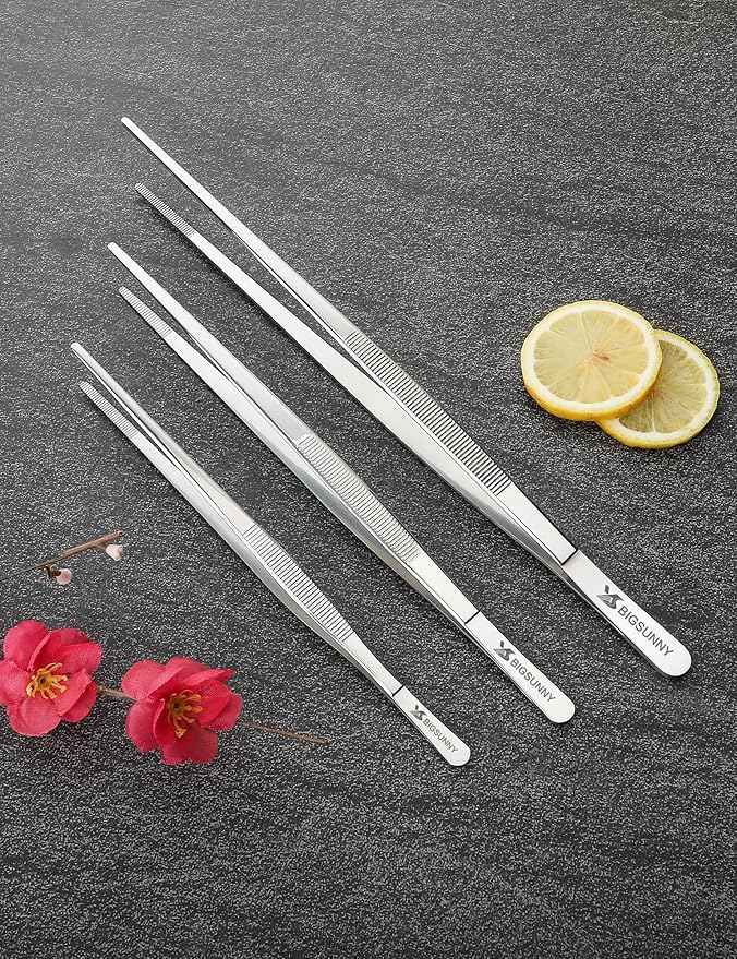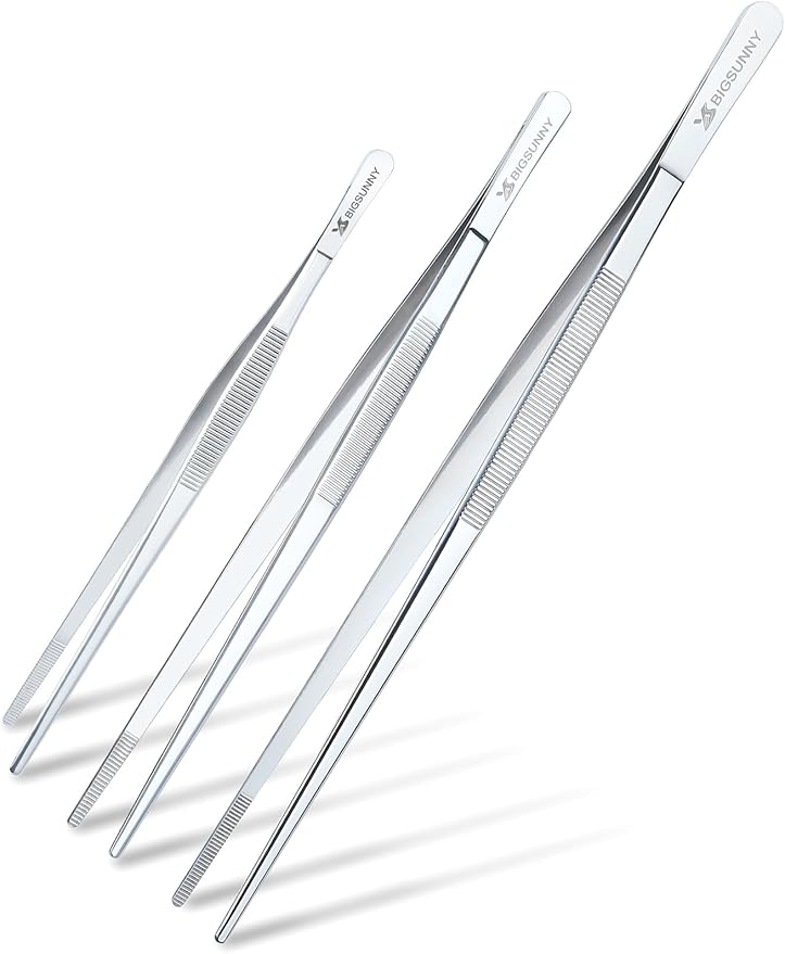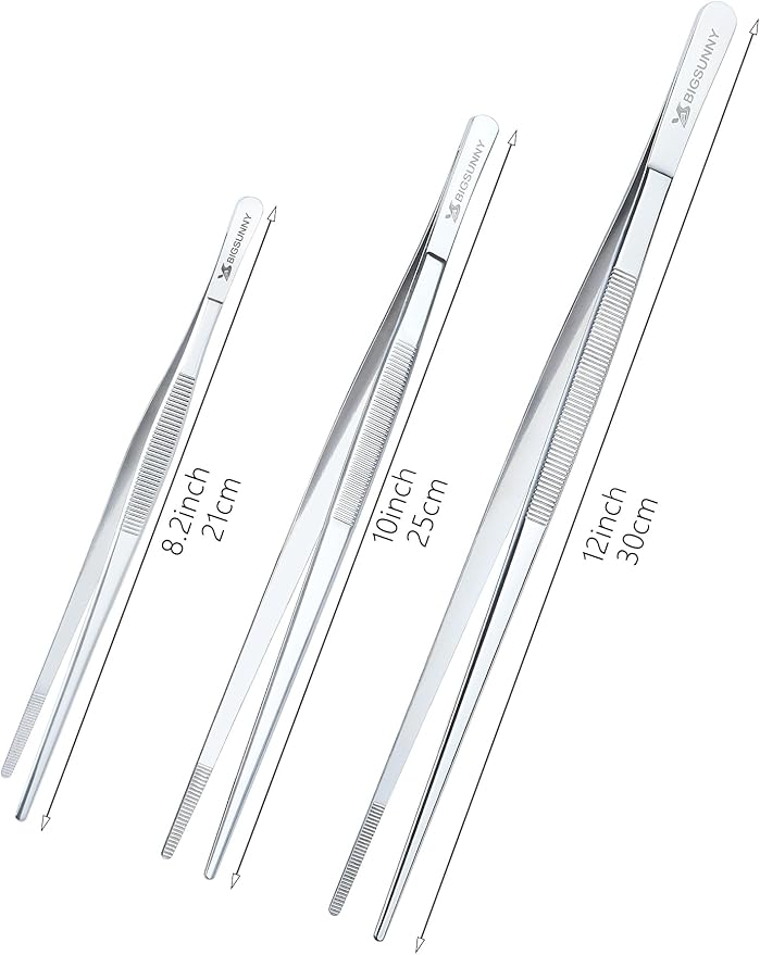 Set of 3 Kitchen Tweezers Fine Tweezer Tongs, MSY BIGSUNNY Stainless Steel Food Tweezers, Precision Serrated Tips Food Tongs (8.5" 10" and 12")
