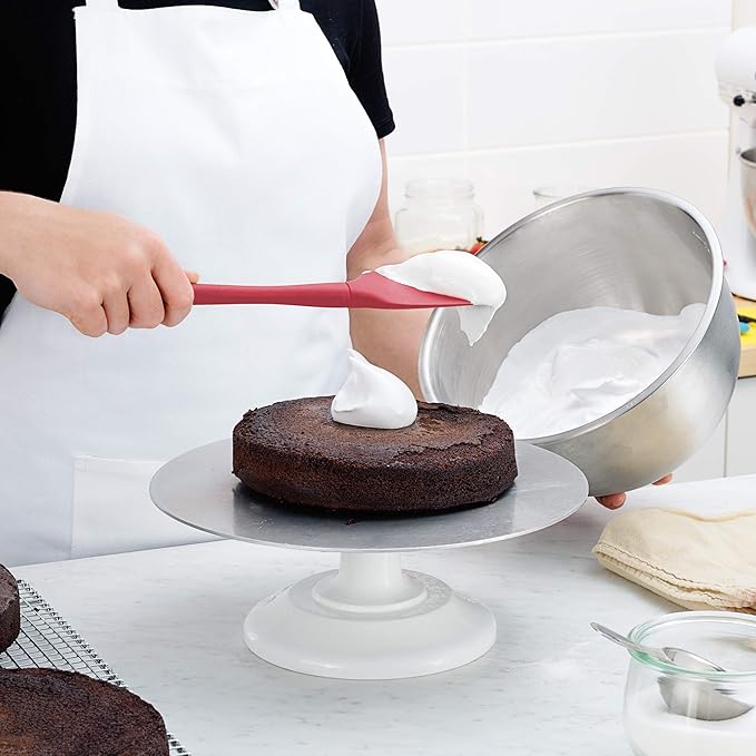 • PERFECT FOR ALL KITCHEN NEEDS: Completely smooth silicone surface allows for even spreading, and edges are tapered to scrape sides clean. The square corners allow this spatula to fit into tight spots and the angled head is perfect for easy scooping.
