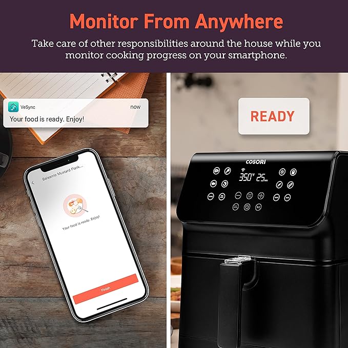 About This APP & VOICE CONTROL: The free VeSync app lets you control your air fryer remotely, monitor cooking progress,... Read more