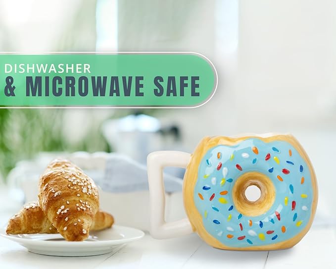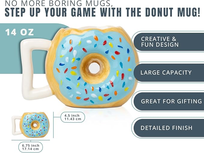 Comfify Ceramic Donut Mug – Chocolate Glaze with Sprinkles – Funny “MMM... Donuts!” Quote – 14 oz Coffee Cup