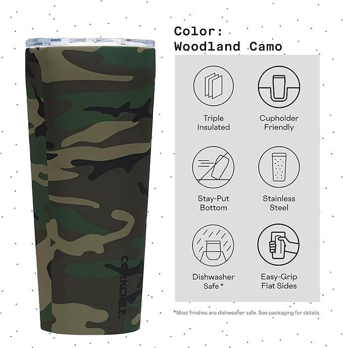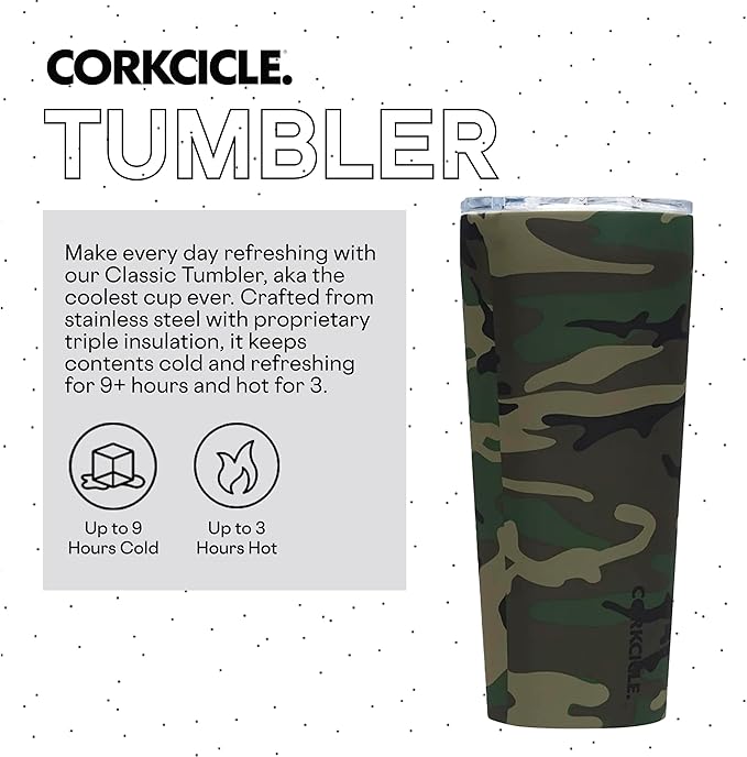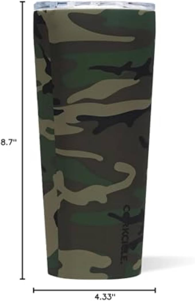 Corkcicle Classic Tumbler - Insulated Stainless Steel Travel Cup - Cold & Hot Drinks - Reusable - Durable - Spill Proof Lid - Non-Slip Silicone Base - Easy Grip - BPA Free - 24 oz - Woodland Camo