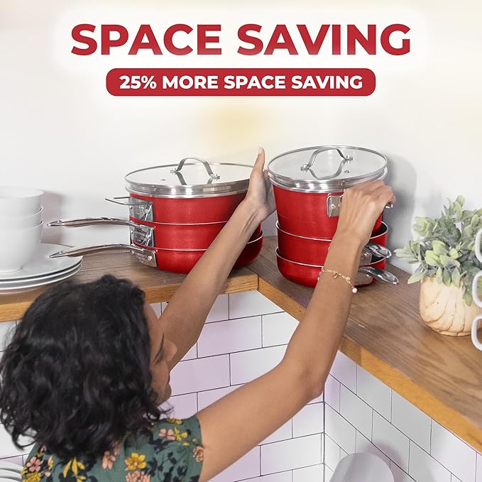About This SPACE SAVING – This pots and pans set revolutionary new design allows you to easily organize your cabinets... Read more