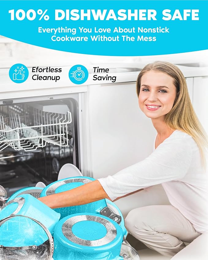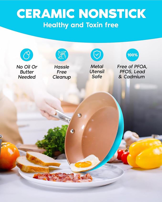 GOTHAM STEEL 20 Piece Copper Pots and Pans Set Nonstick Cookware Set + Complete Ceramic Bakeware Set for Kitchen with Long Lasting Non Stick, Dishwasher/Oven Safe, Non Toxic – Turquoise
