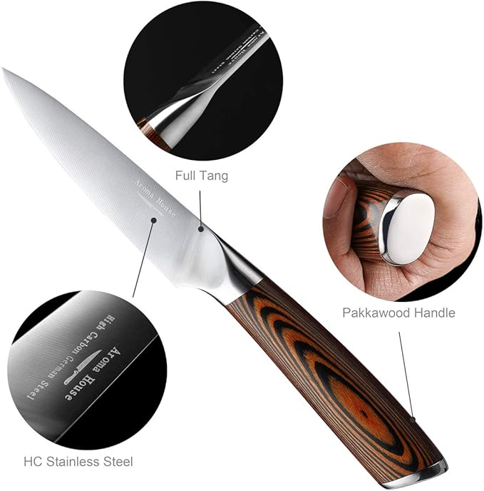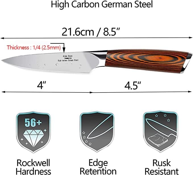 About This HC STAINLESS STEEL BLADE : 4 inch (about 10.2 cm) paring knife forged from German high carbon stainless... Read more