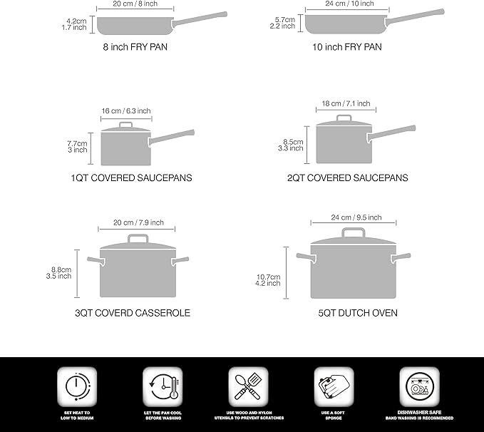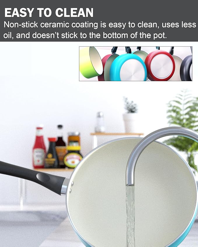 About This Cookware Set: Pots and pans set nonstick includes 1 quart and 2 quart saucepans with Lids, 3 quart... Read more