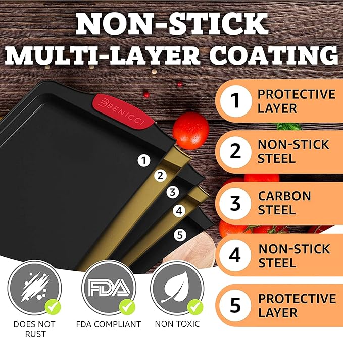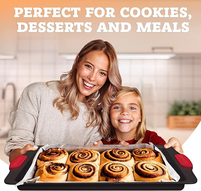 Premium Non-Stick Baking Sheets Set of 3 - Deluxe BPA Free, Easy to Clean Racks w/Silicone Handles - Bakeware Pans for Cooking Baking Roasting - Lets You Bake The Perfect Cookie or Pastry Every Time