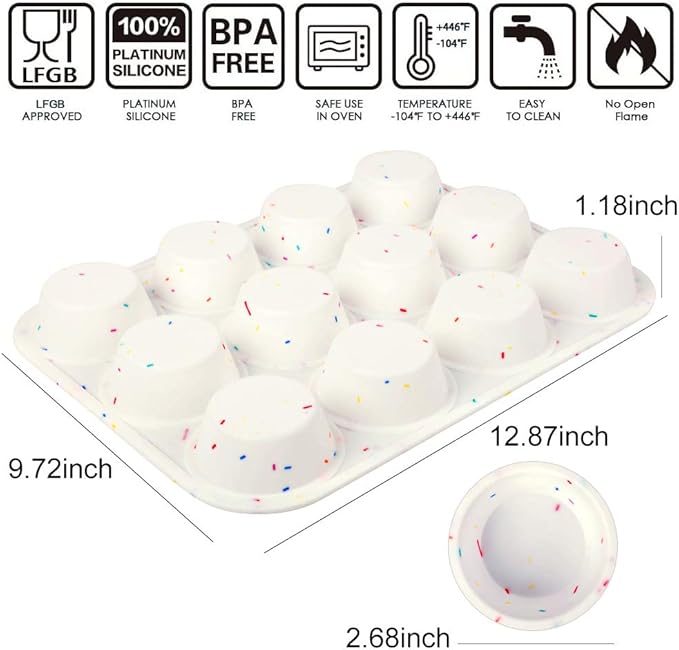 About This FOOD-GRADE SILICONE: This fun confetti Muffin Pan gives you the simplicity and safety you need for baking-without casuing... Read more