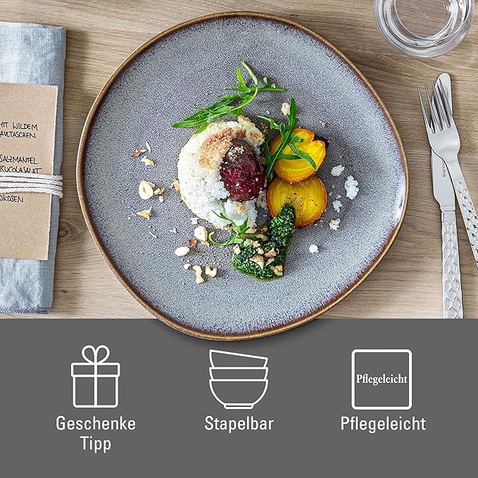 Villeroy & Boch Lave Beige Breakfast Plate, Stylish Stoneware Plate for Appetizers, Salads, Dessert or Brunches, Dishwasher and Microwave Safe, Beige, 9.25 x 9 x 1 in