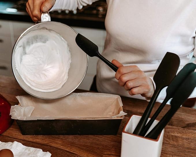 KITCHENLOVE Premium 600°F Heat Resistant 5 Piece Silicone Spatula Set for Baking, Cooking, Mixing - Non-Stick with High Grade S-Iron Steel Core - One Piece Seamless Design - BPA Free (Black)