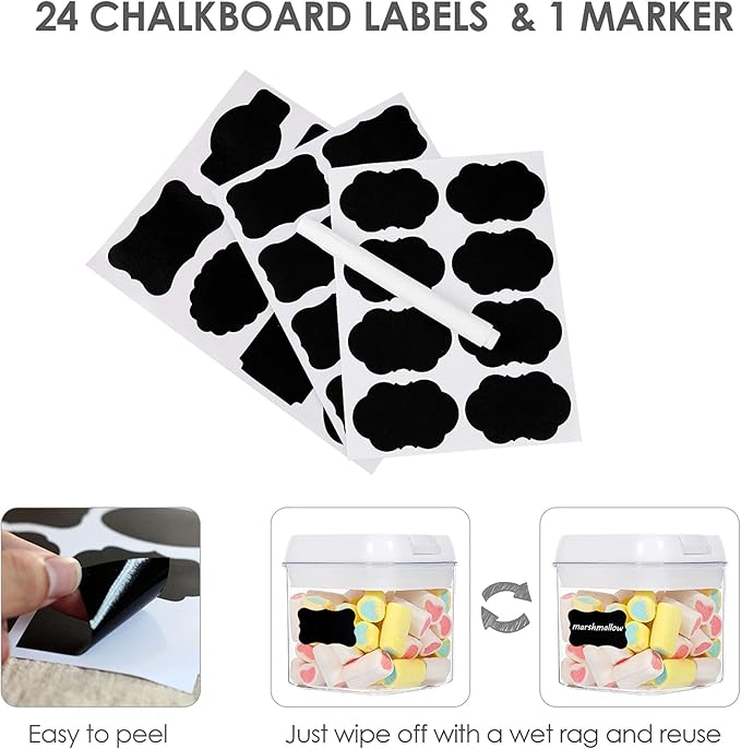 Vtopmart 6 PCS Airtight Food Storage Containers, BPA Free Plastic Snack Containers with Easy Lock Lids, for Kitchen Pantry Organization and Storage, Include 24 Labels, 0.5L