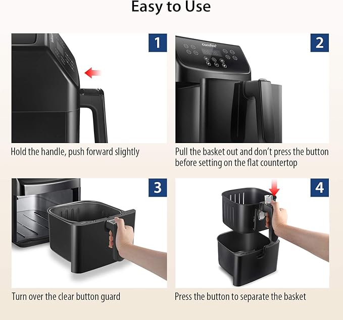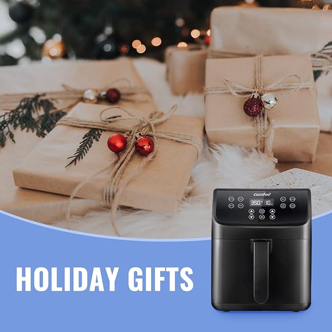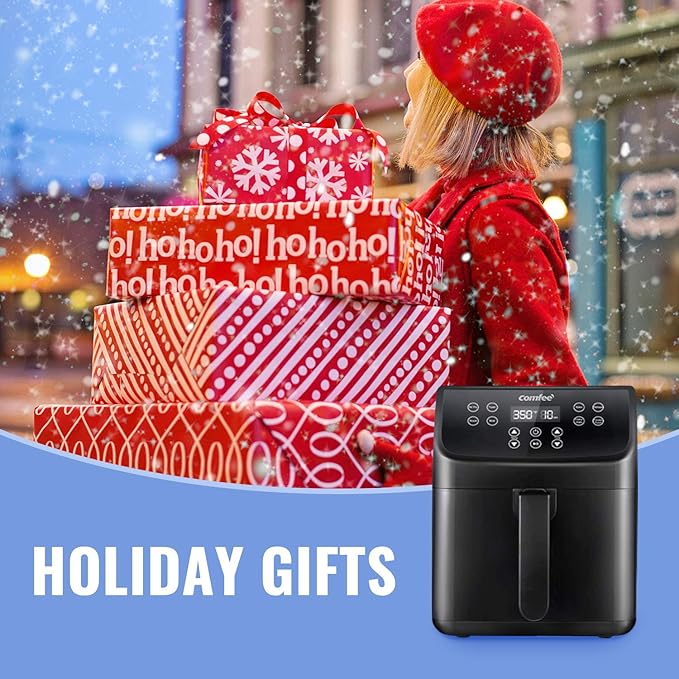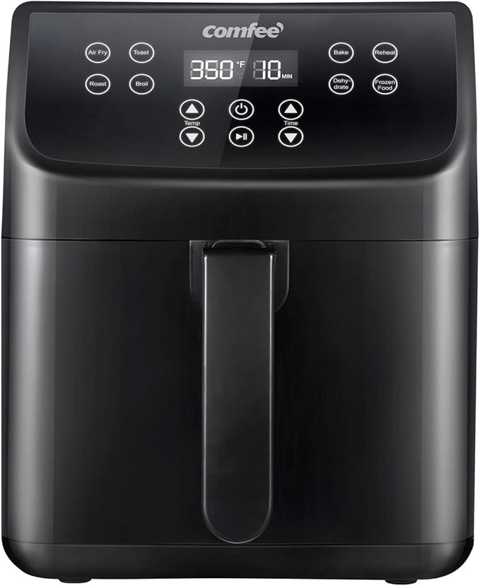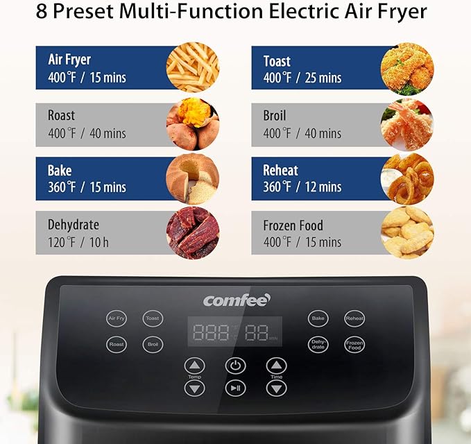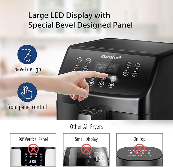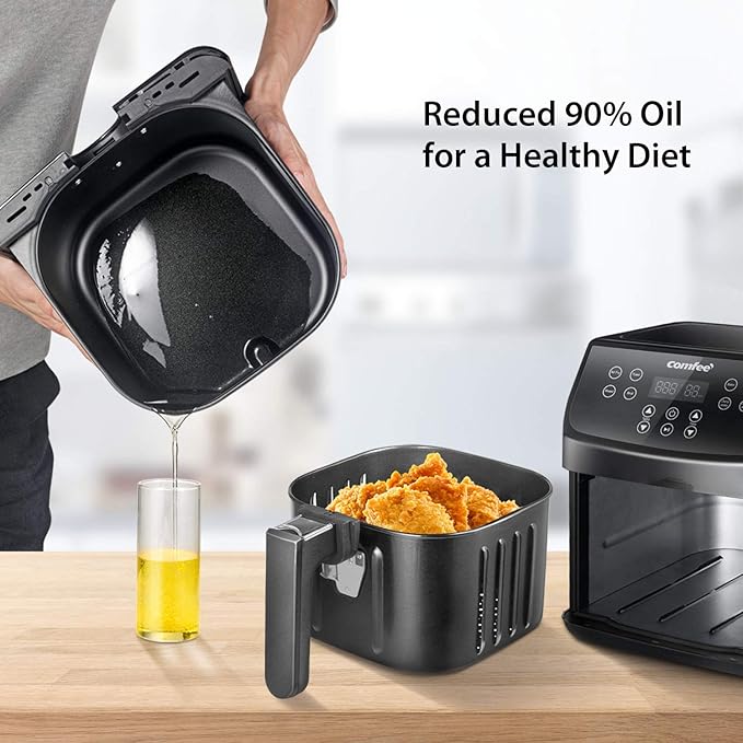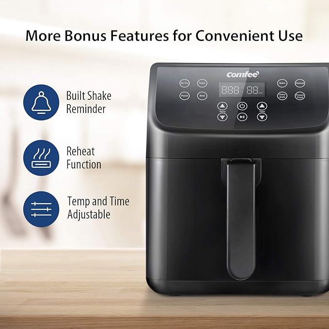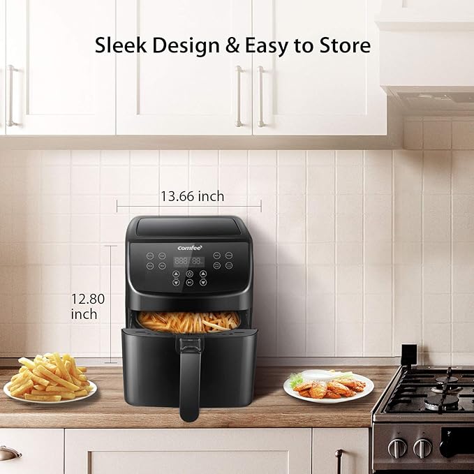COMFEE' 5.8Qt Digital Air Fryer, Toaster Oven & Oilless Cooker, 1700W with 8 Preset Functions, LED Touchscreen, Shake Reminder, Non-stick Detachable Basket, BPA & PFOA Free (110 electronic Recipes)