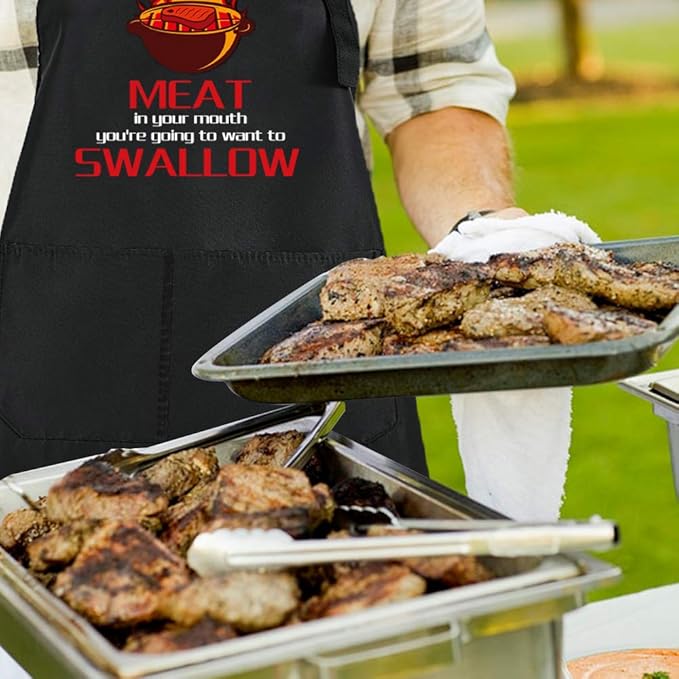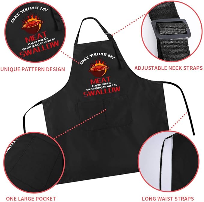 ZOORON Funny Black Chef Aprons for Men Adjustable BBQ Grill Kitchen Cooking Aprons with Pockets, Grill Accessories