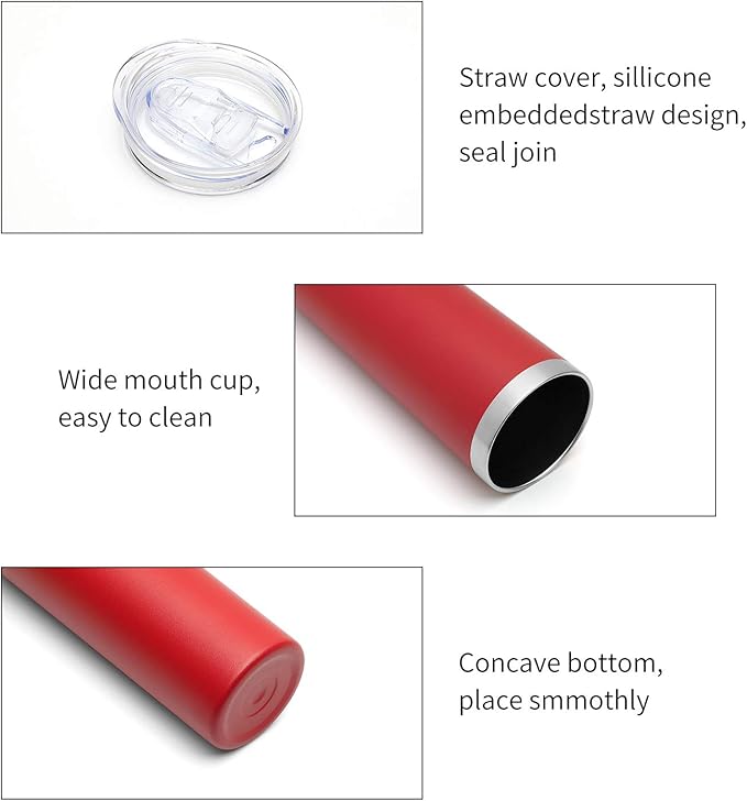 HASLE OUTFITTERS 20 oz Skinny Tumbler, Stainless Steel Insulated Slim Tumbler with Lid, Reusable Double Wall Travel Coffee Mug, Durable Powder Coated Travel Water Cup(Red, 1)