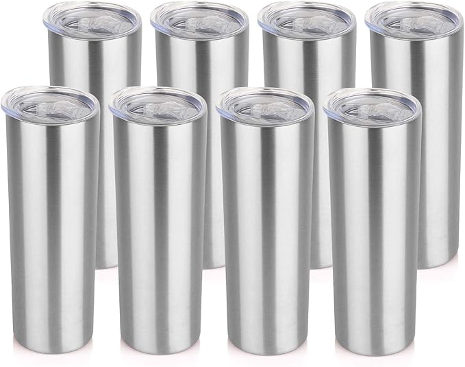 HASLE OUTFITTERS 20 oz Skinny Tumblers Bulk Set, Stainless Steel Insulated Slim Tumblers with Lids Travel Water Cups(Stainless Steel, 8)