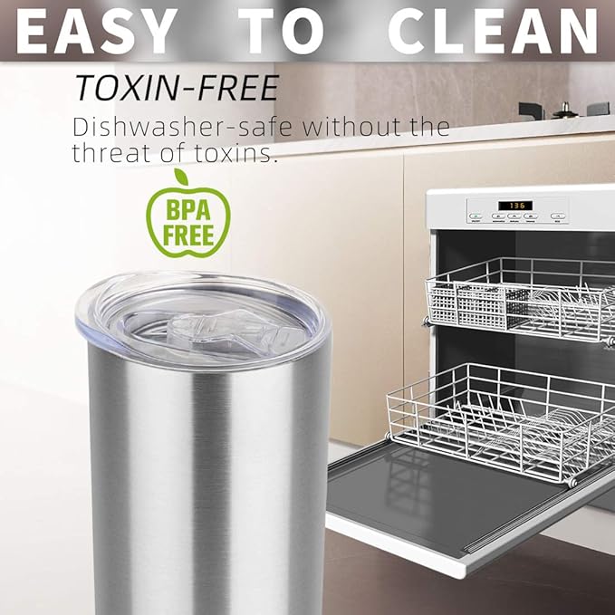 HASLE OUTFITTERS 20 oz Skinny Tumbler, Stainless Steel Insulated Slim Tumbler with Lid, Reusable Double Wall Travel Coffee Mug, Durable Powder Coated Travel Water Cup(Stainless Steel, 1)