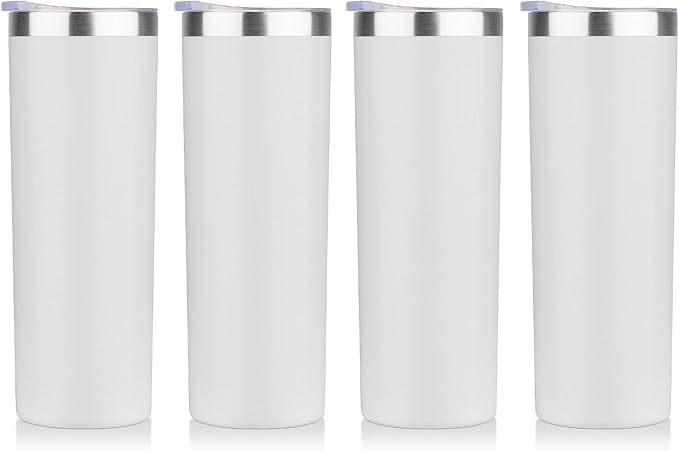 HASLE OUTFITTERS 20 oz Skinny Tumblers Bulk Set, Stainless Steel Insulated Slim Tumblers with Lids, Reusable Double Wall Travel Coffee Mugs, Durable Powder Coated Travel Water Cups(White, 4)