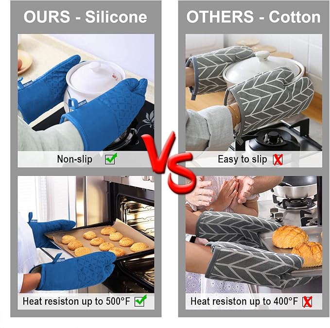 KEGOUU Oven Mitts and Pot Holders 6pcs Set, Kitchen Oven Glove High Heat Resistant 500 Degree Extra Long Oven Mitts and Potholder with Non-Slip Silicone Surface for Cooking (Royal Blue)