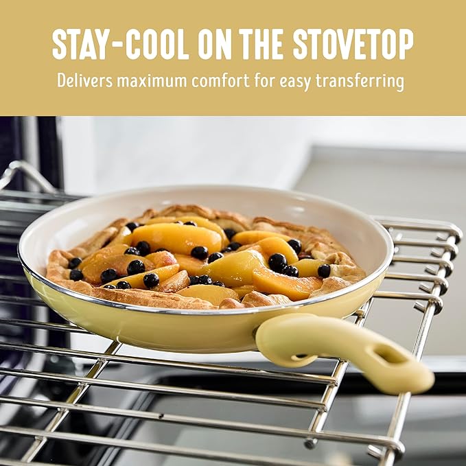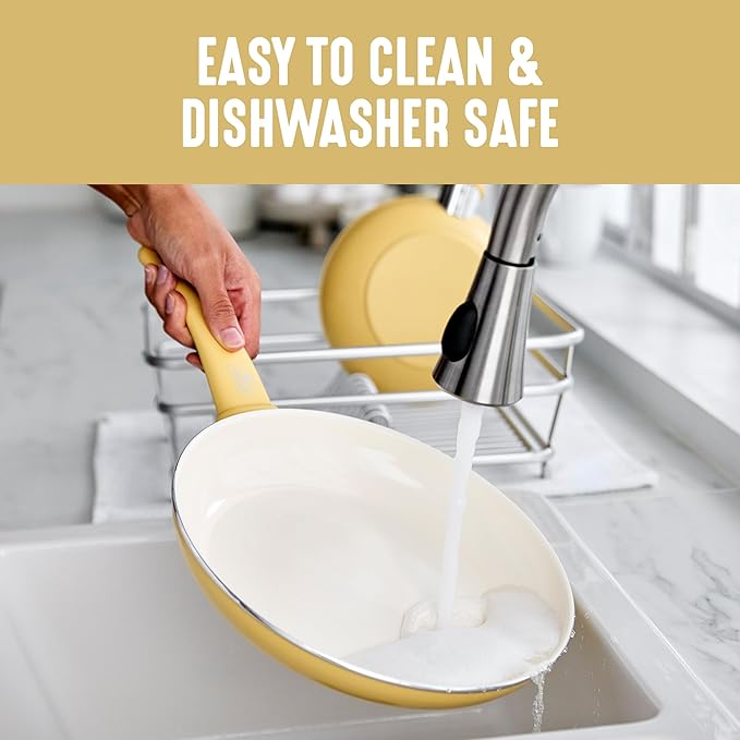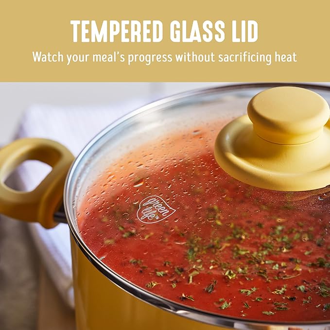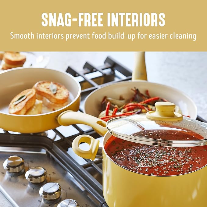 GreenLife 16 Piece Nonstick Cookware Set, Soft Grip Non-Toxic PFAS-Free Ceramic Pots & Pans, Dishwasher & Oven Safe, Frying, Sauce, Saute, Utensils, Glass Lids, Stay-Cool Handles, Wobble Free, Yellow