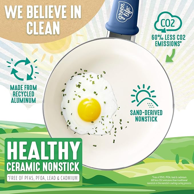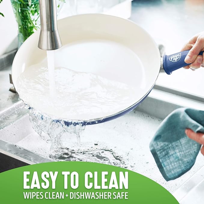 GreenLife Soft Grip Healthy Ceramic Nonstick 12 Piece Cookware Pots and Pans Set, PFAS-Free, Dishwasher Safe, Blue
