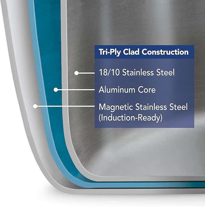 About This Tri-Ply Clad Construction: Features an aluminum core for even heat distribution and precise cooking control Premium 18/10 Stainless... Read more