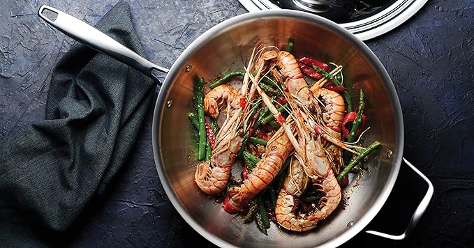 Tramontina Signature Tri-Ply Clad Stainless Steel 12.5-Inch Wok with lid, Induction-Ready, Dishwasher-Safe, NSF-Certified, Made in Brazil