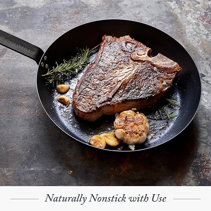 Merten & Storck Pre-Seasoned Carbon Steel 12” Frying Pan Skillet, Use on Induction, Stove and Grill, Durable, Even-Heating, for Searing, Grilling, Oven Use, and Campfire, Indoor/Outdoor