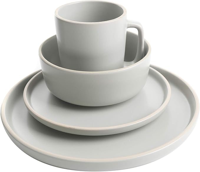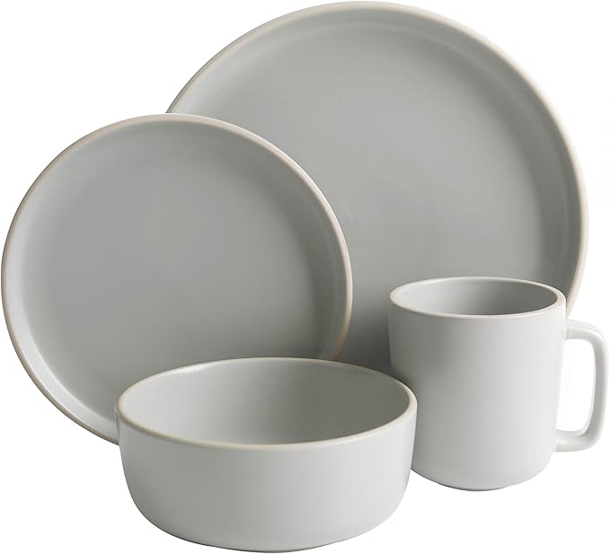 Gibson Home Zuma 16 Piece Round Kitchen Dinnerware Set, Dishes, Plates, Bowls, Mugs, Service for 4, Matte Stoneware, Light Grey